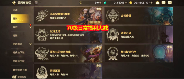 【3】周常地下城刷新券,同时是官方公告实锤!之前介绍的“卡12张刷新券刷70级周本”的黑科技玩法凉凉了,查理策划的意思:70级的巨峰之巢和永恒冻土,与你65级的周常刷新券没关系,虽然名字相同,但分新旧!旧门票怎么能刷新副本呢?
